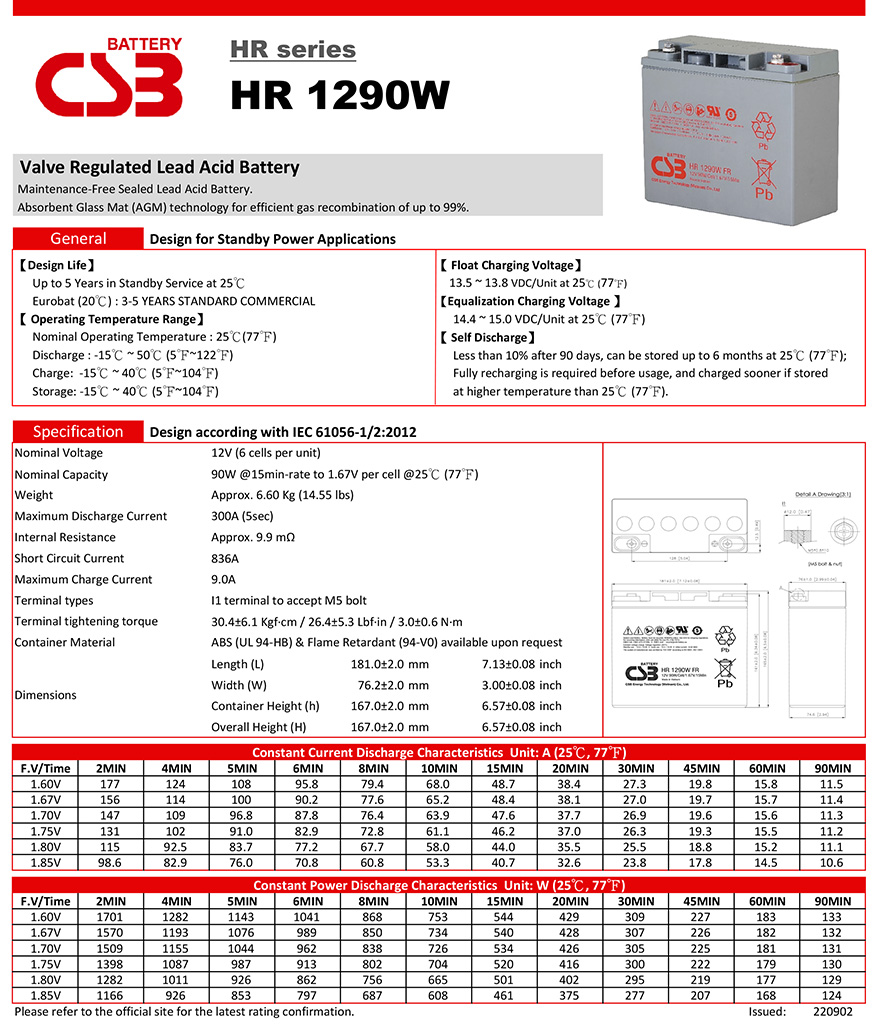 • 产品描述:HR1290W蓄电池专为高效放电应用而设计。其特点是体积小、重量轻、放电效率高。它可以在待机状态下使用长达5年。